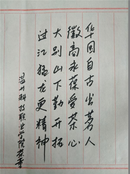 此次來參加學(xué)習(xí)的學(xué)員們不僅相處融洽,有些學(xué)員還才華橫溢。其中有位學(xué)友《溫州科技職業(yè)學(xué)院》茶葉系董占波老師還為華國茗人查江龍舒先生題詩一首。