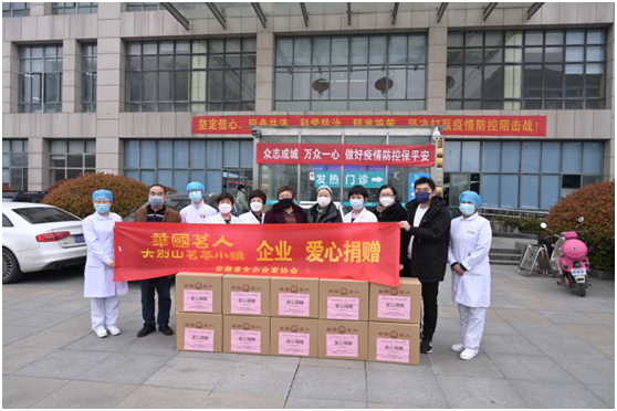 作為安徽老字號茶葉企業(yè)用行動表示向“全國奮戰(zhàn)在一線的醫(yī)護(hù)人員”致敬!“安徽省華國茗人農(nóng)業(yè)有限公司”攜同公司基地“安徽省大別山茗茶小鎮(zhèn)農(nóng)業(yè)綜合有限公司”企業(yè),在安徽省女企業(yè)家協(xié)會的參與下向奮戰(zhàn)一線“白衣天使”致敬并向安徽省新型冠狀病毒感染的肺炎醫(yī)療救治定點(diǎn)醫(yī)院“安徽省第二人民醫(yī)院”捐贈【大別山黃茶、大別山霧里香】茶葉及物資表示愛心,眾志成城、萬眾一心、打贏疫情防控阻擊戰(zhàn)。