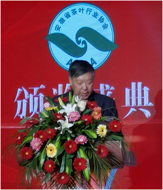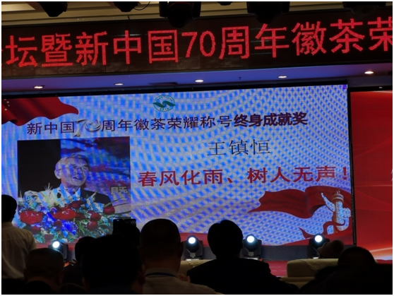 安徽省茶文化研究會會長丁以壽教授宣讀“新中國70周年徽茶榮耀稱號”獲獎名單。