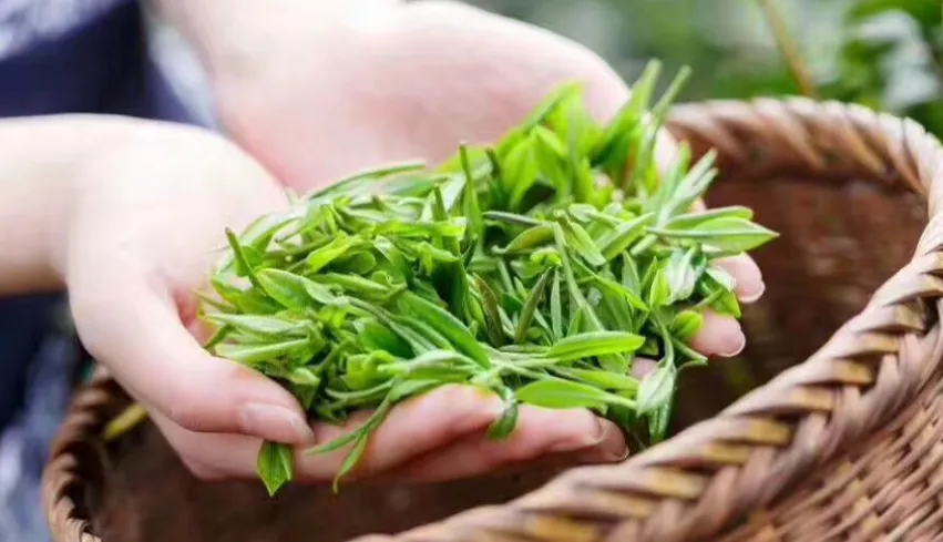 9.莫干黃芽茶:產(chǎn)于浙江省德清縣的莫干山,其條緊纖秀,細似蓮心,含嫩黃白亳芽尖,故名。屬莫干云霧茶的上品。莫干黃芽茶所制成品,芽葉完整,凈度良好,外形緊細成條似蓮心,芽葉肥壯顯茸毫,色澤黃嫩油潤,湯色橙黃明亮,香氣清鮮,滋味醇爽。